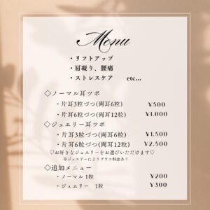 10月13日月曜日、耳つぼジュエリーをご予約頂けます。