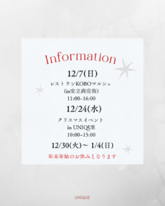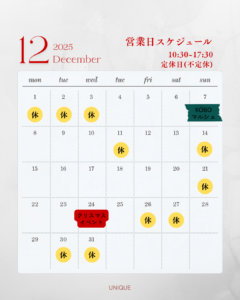 展示会や仕入れなどで急遽お休みの時はInstagramにてお知らせいたしますね♪